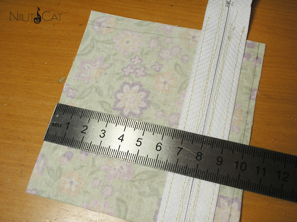 Из лицевой ткани кроим кусочек размером 21х16см. Если боитесь промахнуться при стежке, прибавьте еще по 1 см (22х17см). Второй , такого же размера , из ткани для внутренностей :)
