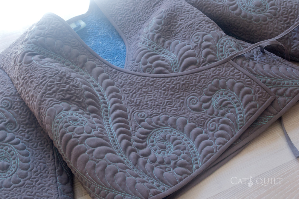 Одеяло выполнено в технике free motion quilting. Стежка не плотная, одеяло легко складывается и приятно для рук. Лицевая сшита из хлопка с неравномерным окрашиванием с эффектом старины, наполнитель синтепон.